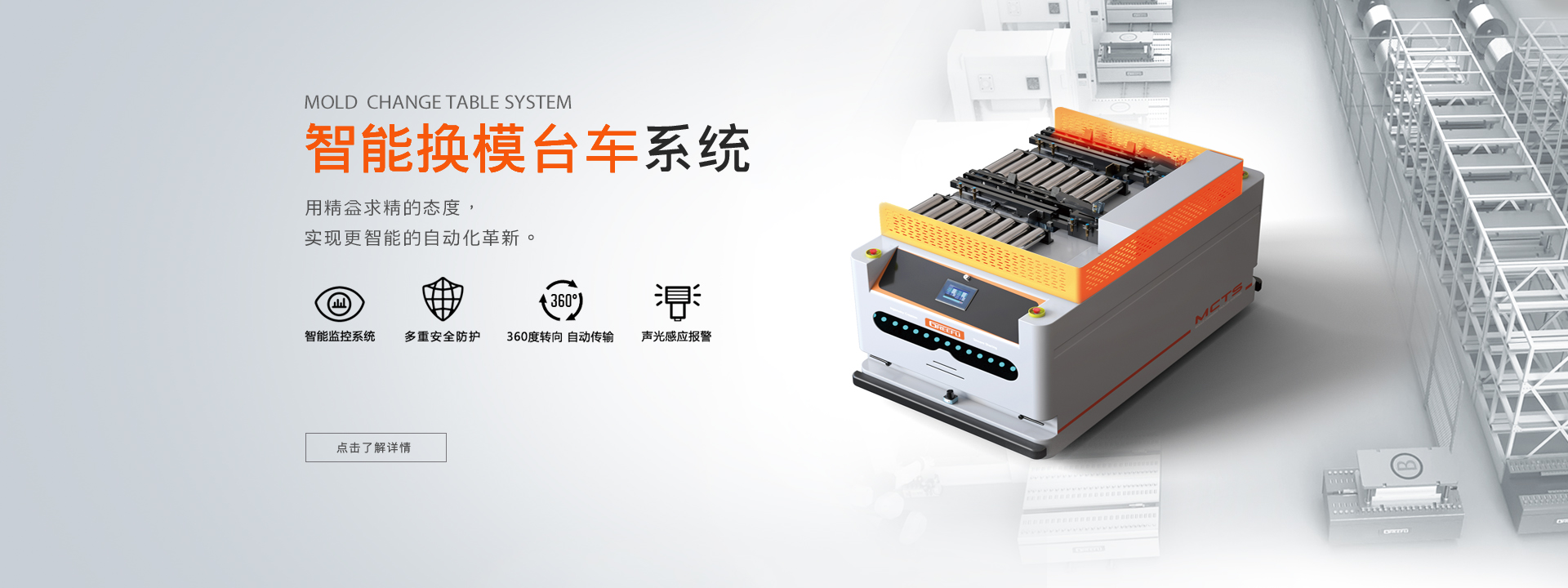 面對市場不斷出現(xiàn)的新挑戰(zhàn),格萊富助力企業(yè)發(fā)展,為工業(yè)生產提供模具裝夾、模具快換、模具搬運、模具倉儲等完善的換模自動化整體解決方案。使企業(yè)不但實現(xiàn)模具快速更換、智能轉運、精益生產,還提高效率,優(yōu)化工藝,強化競爭優(yōu)勢...了解更多